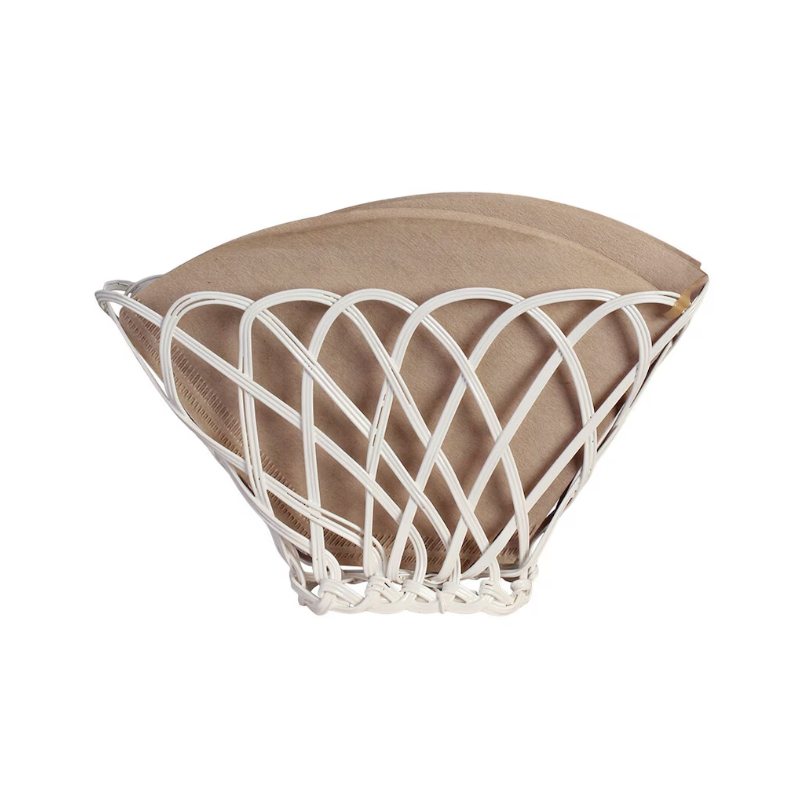 En funksjonell og dekorativ kaffefilterholder i stilrent trådkurvdesign. Denne kan stå fritt på kjøkkenbenken eller kaffehyllen, eller henges på veggen for enkel tilgang til kaffefiltrene.